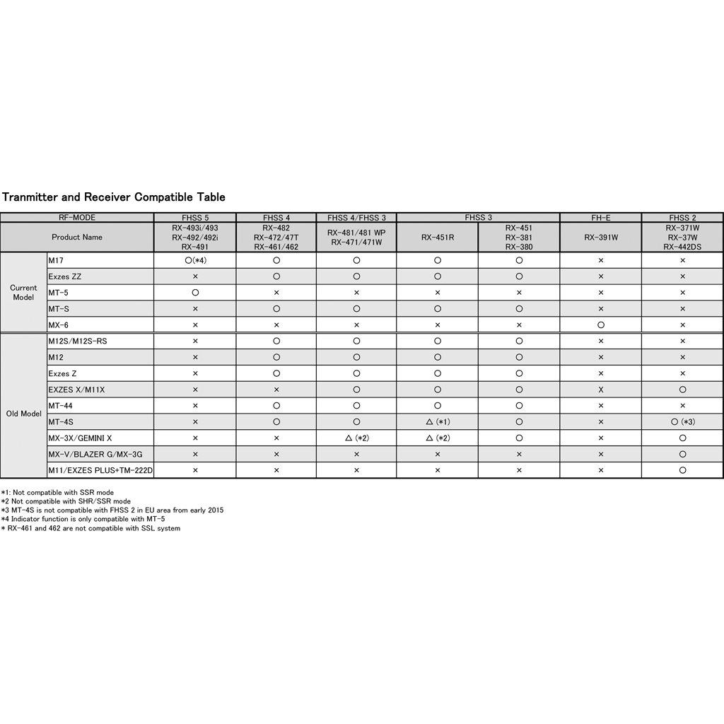 *RX-492i can be used with FH5 transmitters that do not have indicator function.